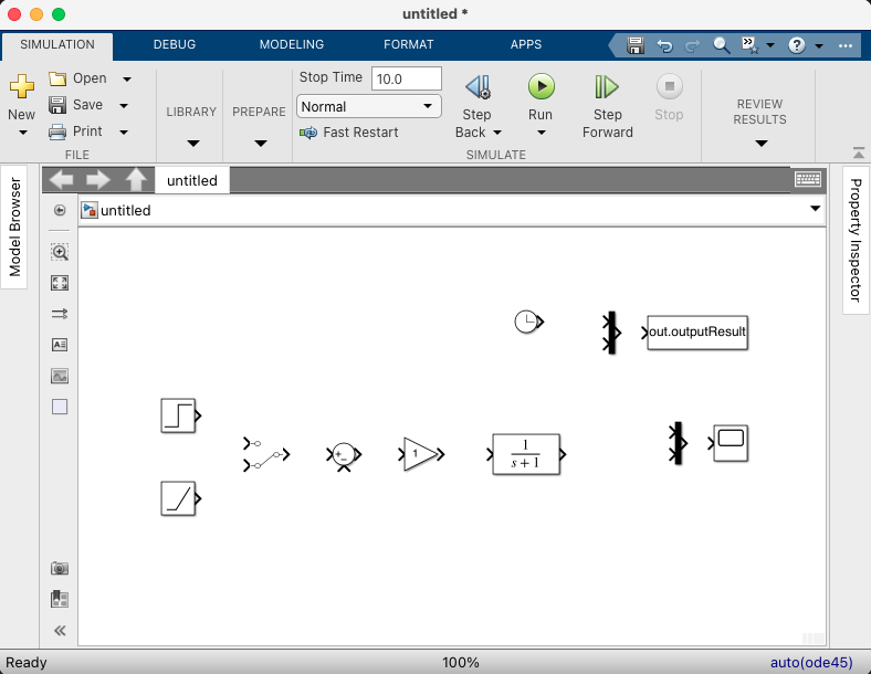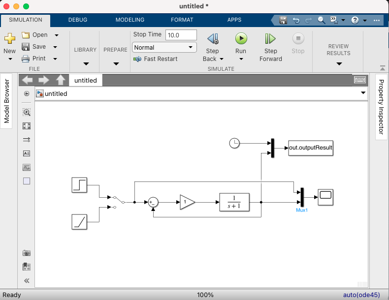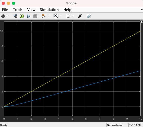 Run을 클릭하면서 계단 함수 입력과 램프 함수 입력에 대한 결과를 확인해 본다.