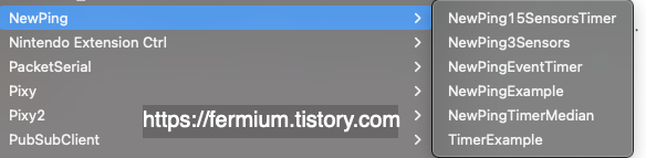 설치하고 나면 아래와 같이 NewPing이라는 예재들이 생긴다.