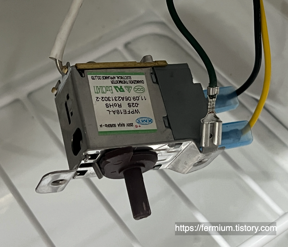 온도조절 부분의 나사를 풀어보니 이런 조절기가 들었다.